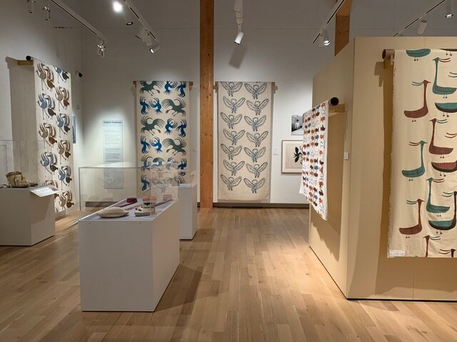 Installation view of Printed Textiles from Kinggait Studios at the Peary-MacMillan Arctic Museum, Bowdoin College
